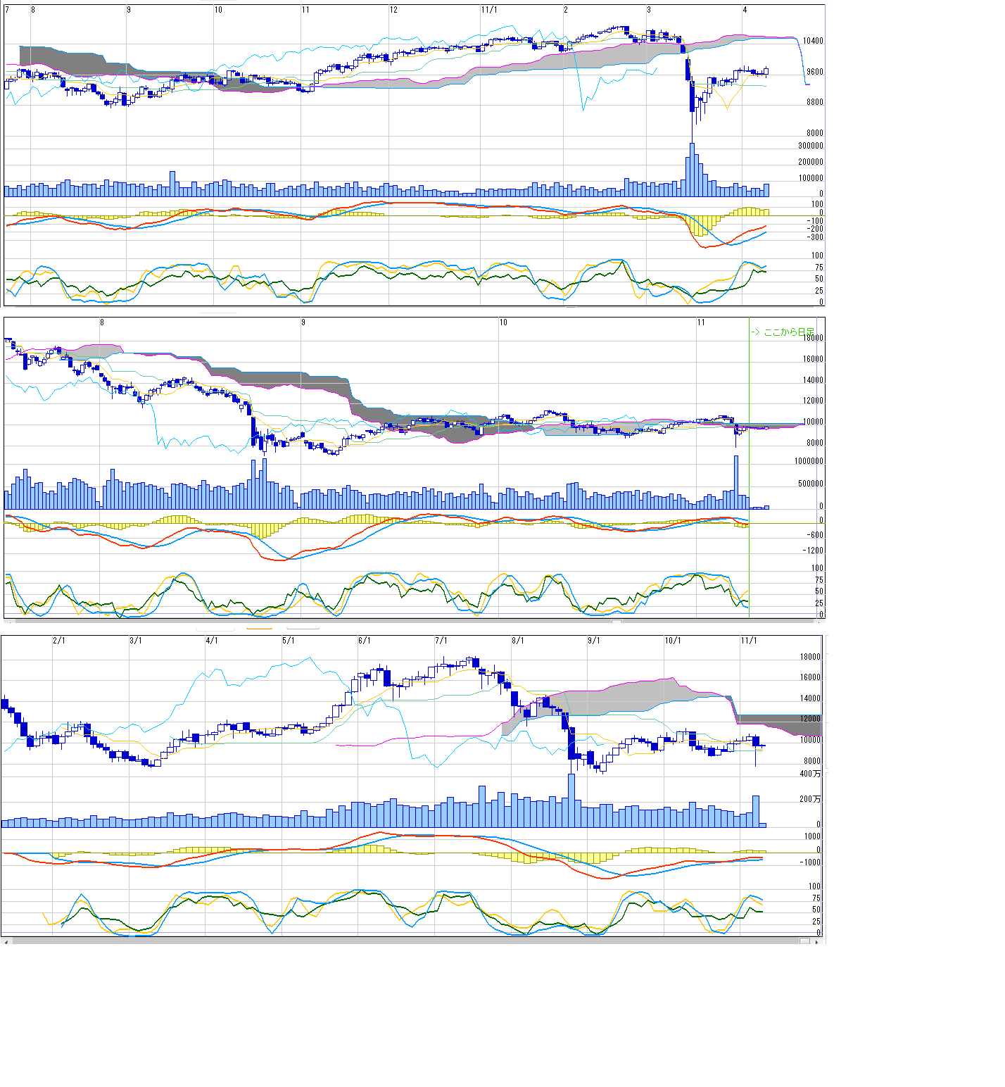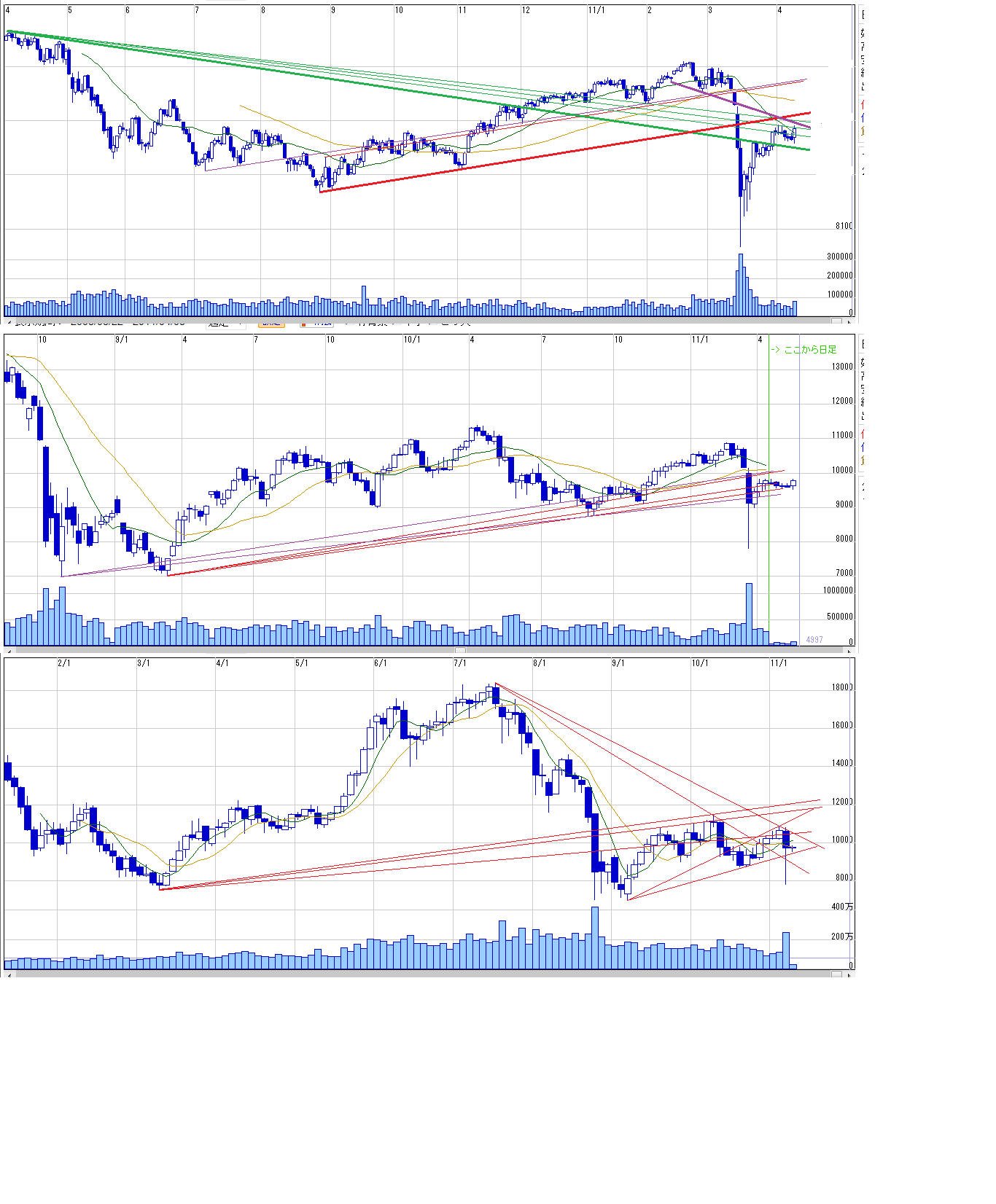2011/04/10 - 月とスッポンさんの株式ブログ。タイトル:「4/11~ 来週のチャートポイント①」 本文:日経先物
