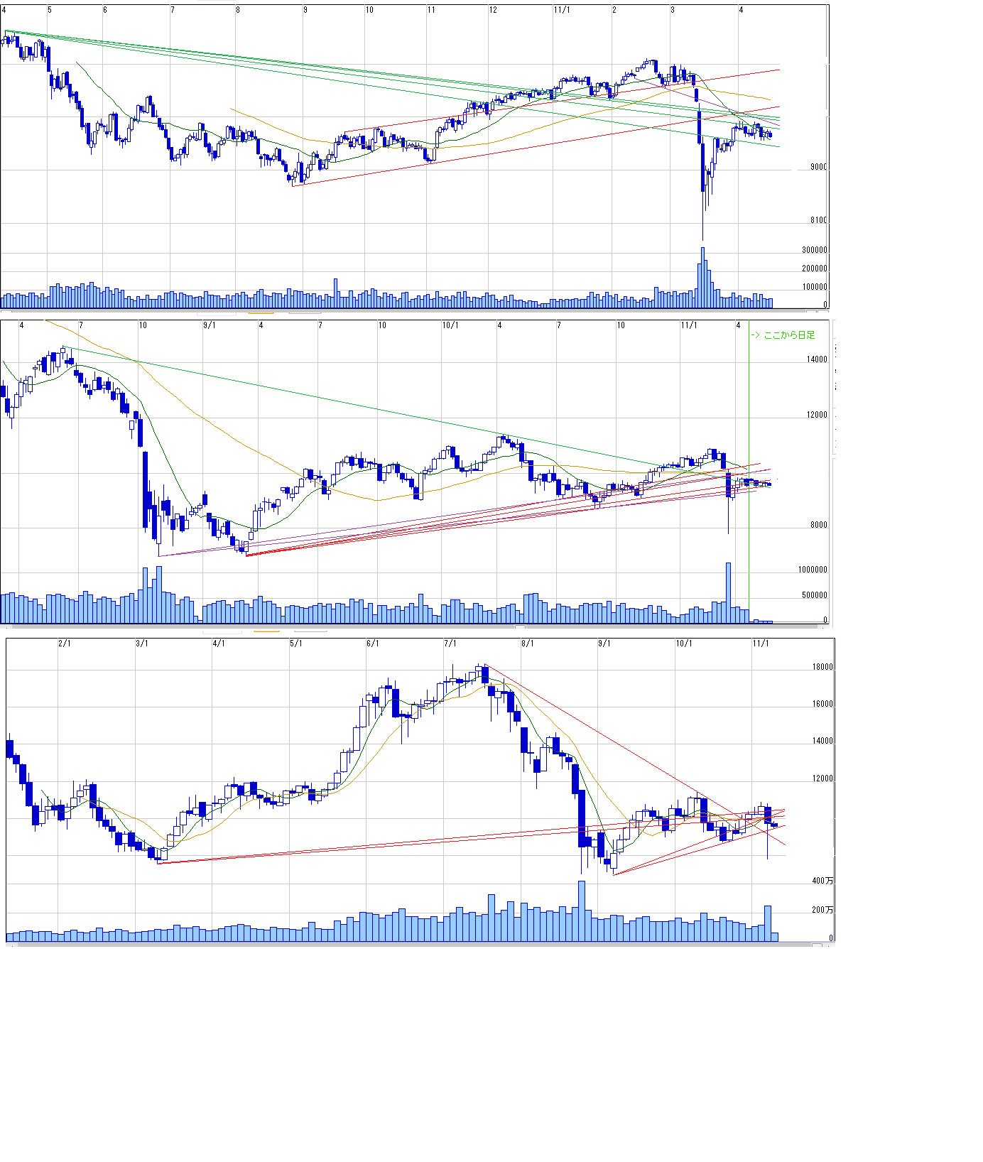 2011/04/17 - 月とスッポンさんの株式ブログ。タイトル:「4/18~ 来週のチャートポイント①」 本文:日経先物