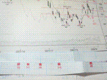 個別銘柄のグラフは、コンピュータから印刷しているが、日数を数えるのは『一目均衡表のグラフ』を加工したマスターのカレンダーと基本数値尺を使用。