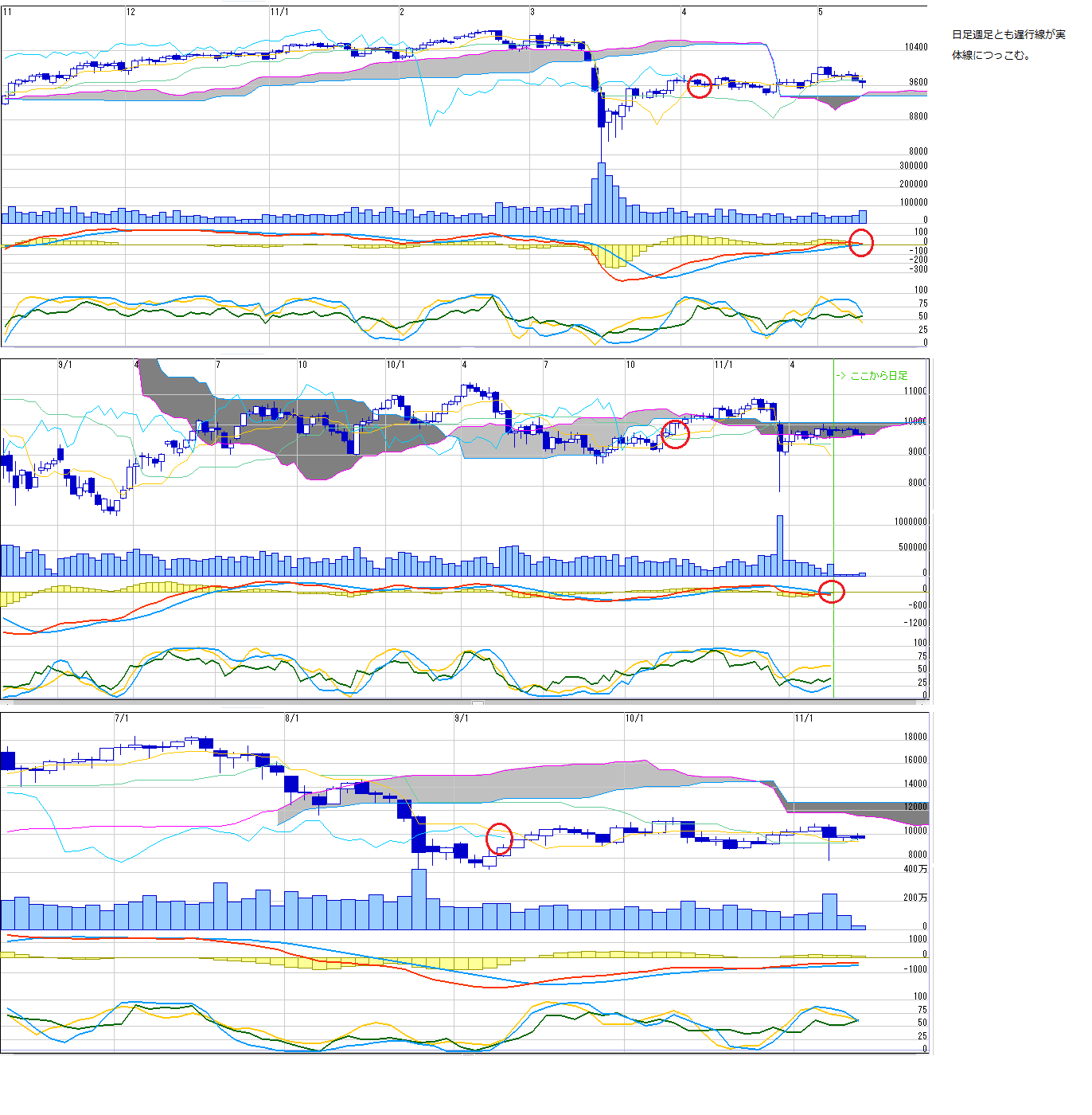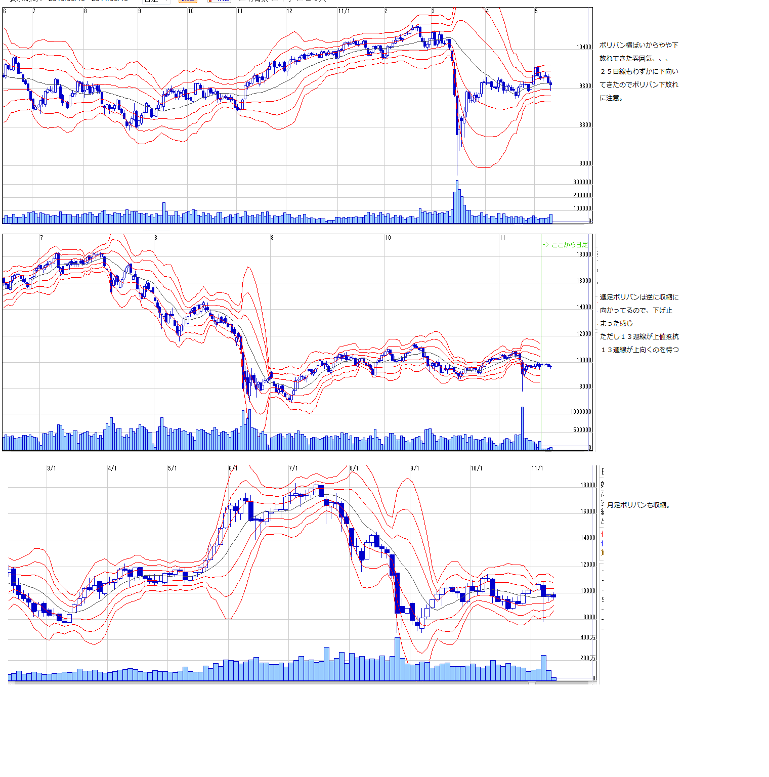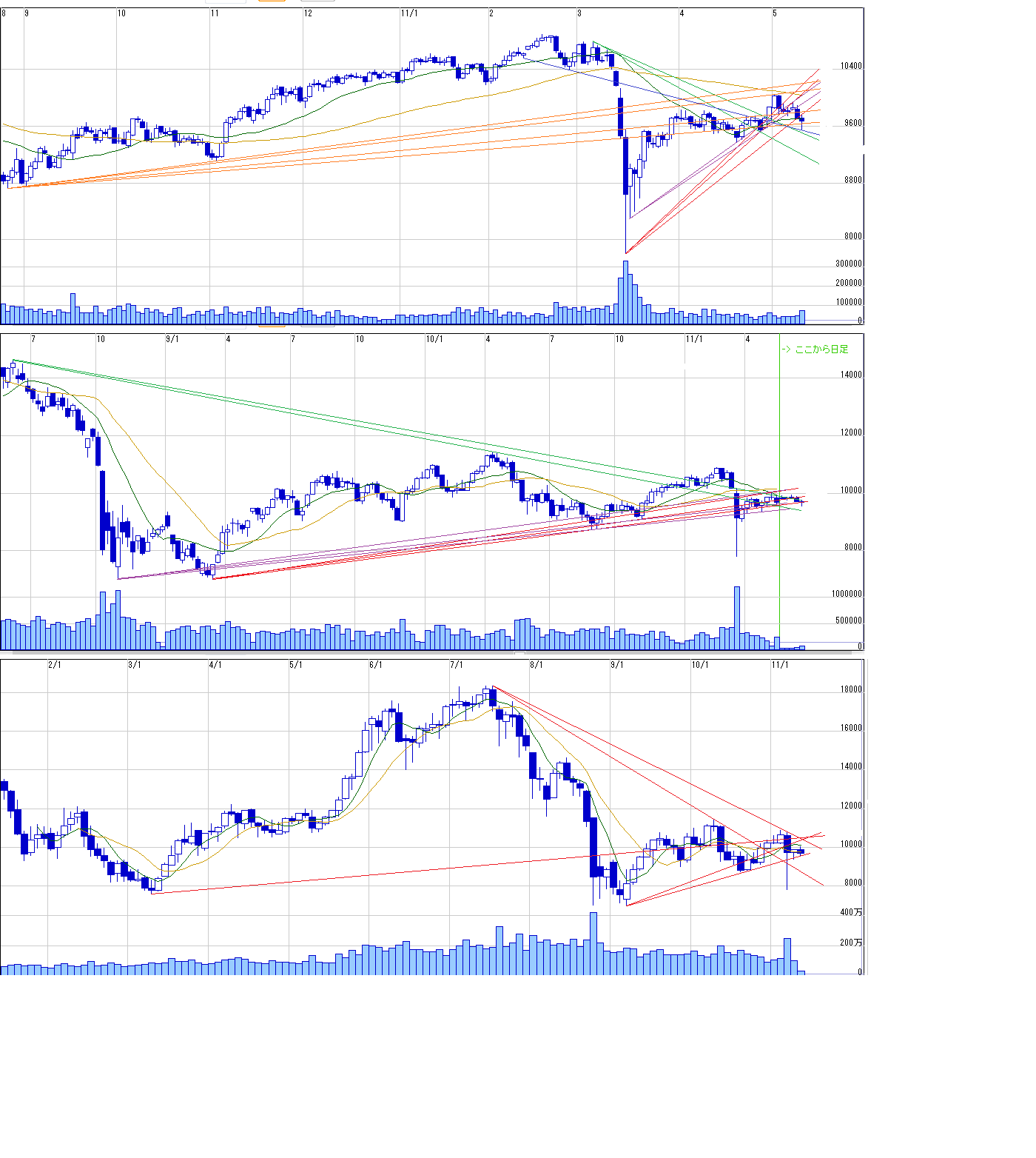 2011/05/14 - 月とスッポンさんの株式ブログ。タイトル:「5/16~ 来週のチャートポイント①」 本文:日経先物 ここから戻れば三尊の右肩つくりに行く?