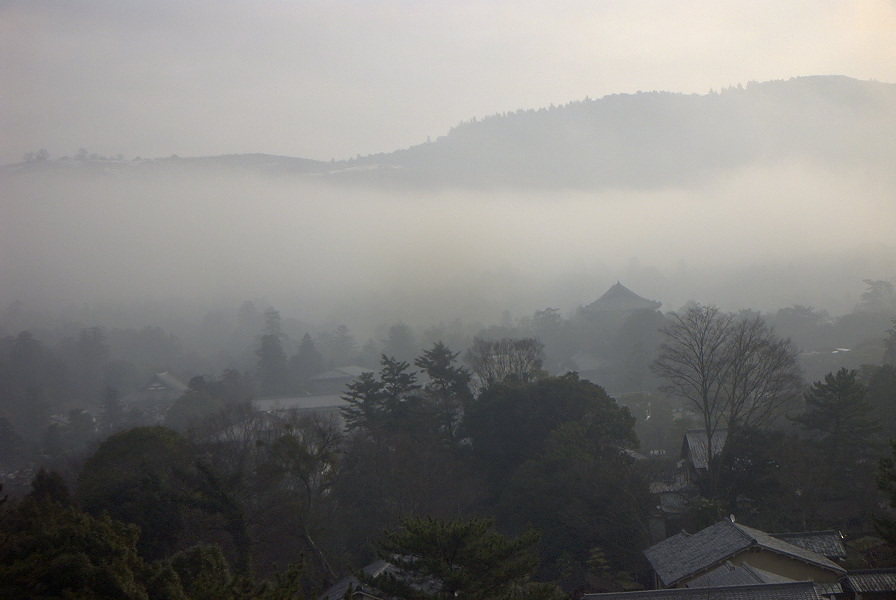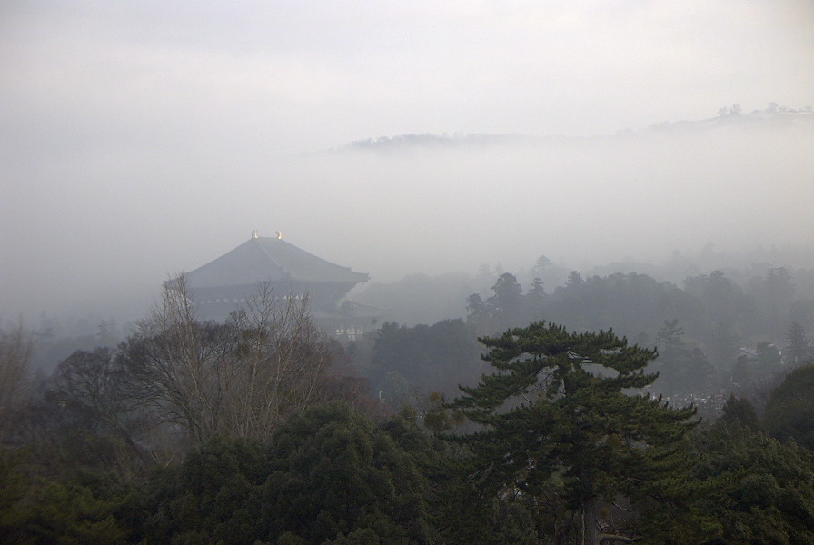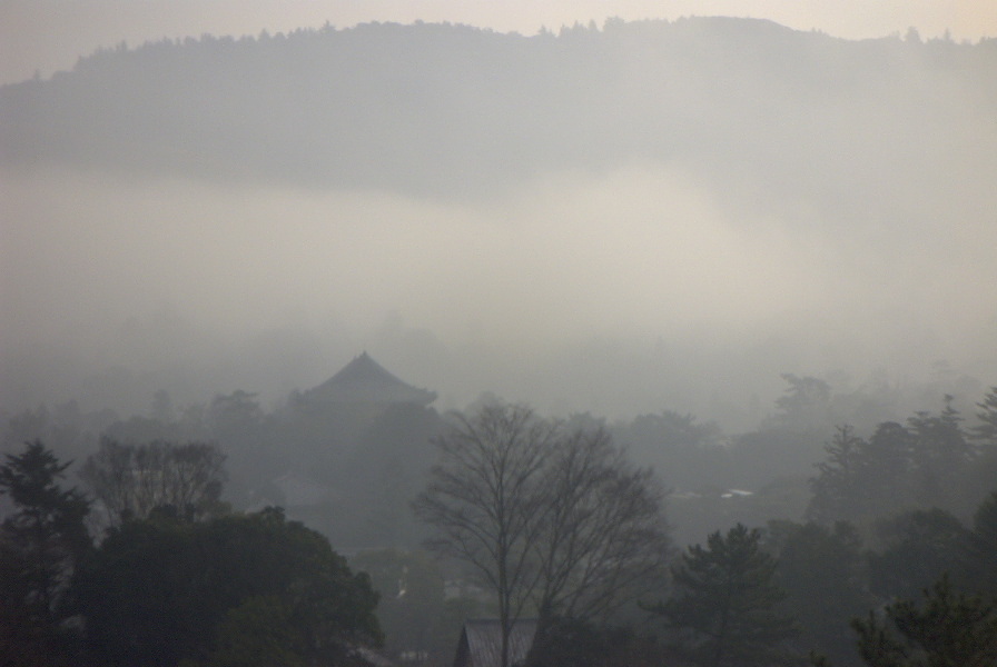 2008/01/22 - リタイア・尾瀬遠望さんの株式ブログ。タイトル:「奈良公園霧の朝遠望」 本文:奈良公園の朝は昨日の雪に続いて、今日は深い霧が立ち込めていました。 公園の木々や東大寺の大仏殿も霧の中、鹿さんも見えません。