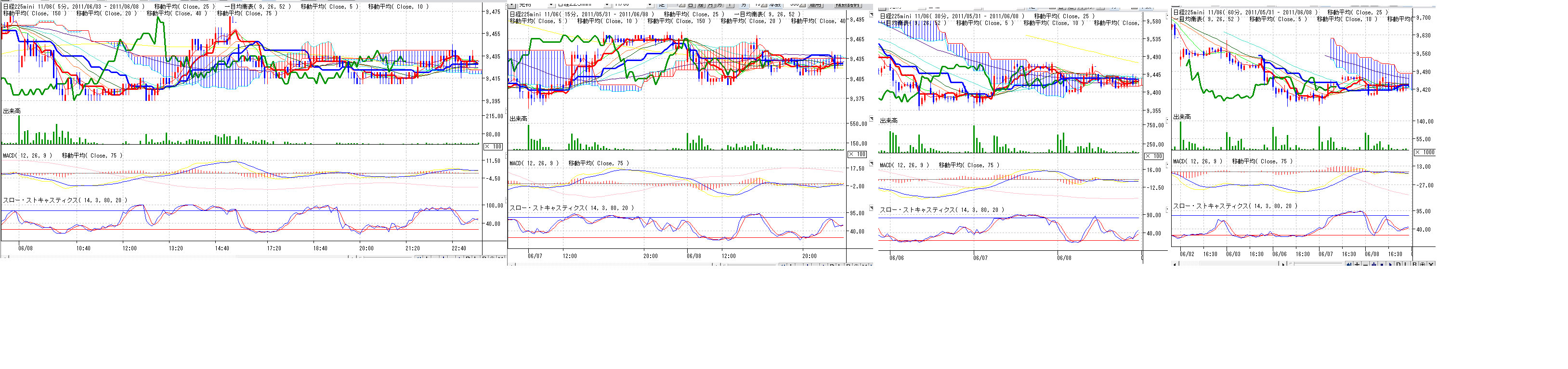 2011/06/08 - 月とスッポンさんの株式ブログ。タイトル:「6/8 本日のチャート」 本文:戻り目線で久々の買い目線にしたのですが、弱すぎですね、、、--;