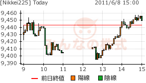 2011/06/09 - minnsann123さんの株式ブログ。タイトル:「6/8のメモ 2 円と株価の連動」 本文:本日のNKは、為替の変動と連動した値動きとなった。ドルでは9時頃の80.2円から昼頃79.75円。反騰して3時頃80.15円。その後反落して79円台確定的となった。ユーロも同じ動きで、116円台に。一