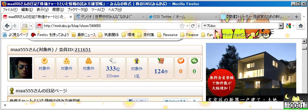 2011/06/12 - maa_maaさんの株式ブログ。タイトル:「株価チャートといた情報の読み方練習帳」 本文:という本をかって分足板読み勉強中です。恥ずかしながらまったくデイに疎かったもので。ううーん。悩みますねー。なんかだいじなとこが分かってない気がしてますー。