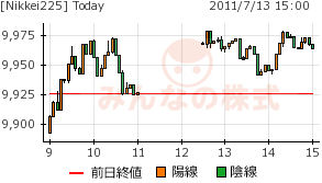 2011/07/13 - minnsann123さんの株式ブログ。タイトル:「7/13のメモ 2 後場、上値を探る」 本文:NKの後場は9980円を確かめる動きか。 NK 画像1