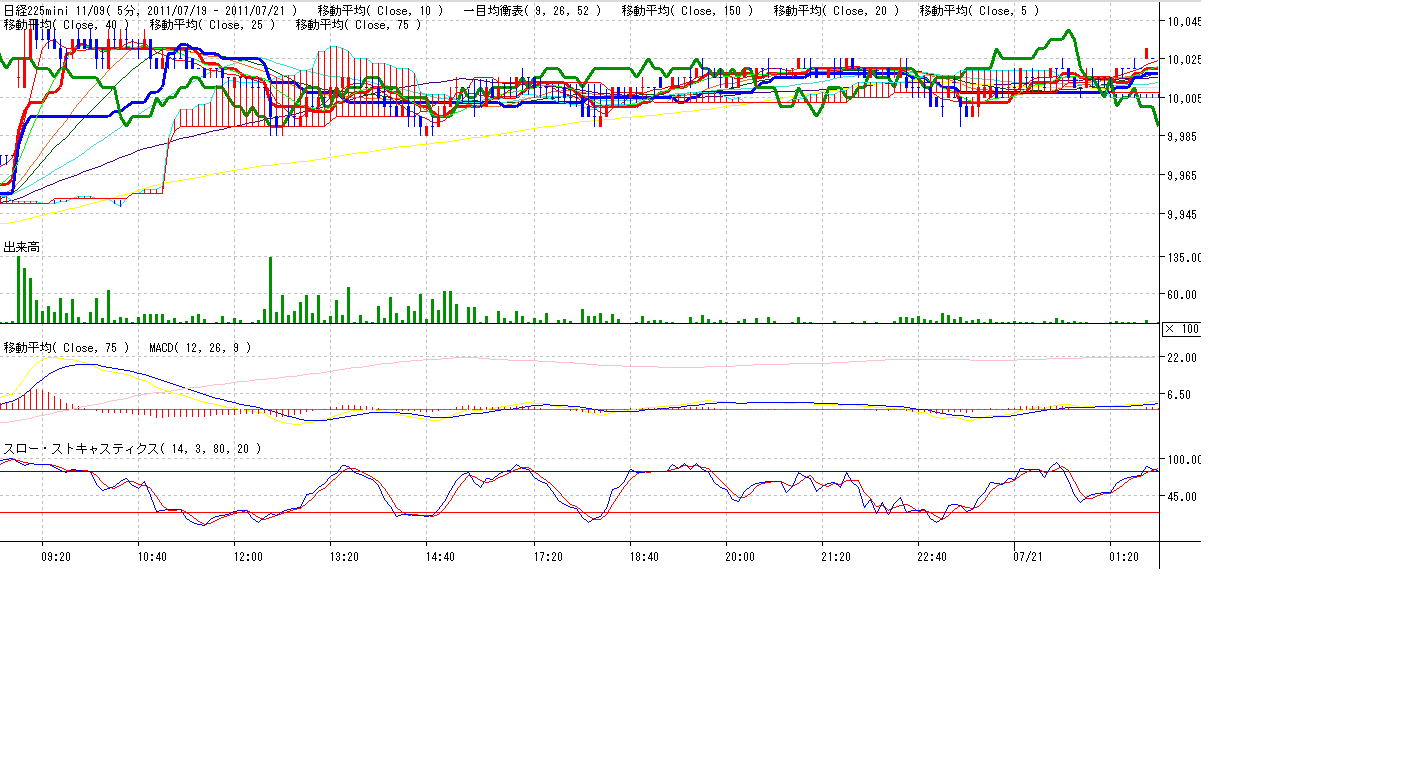 2011/07/20 - 月とスッポンさんの株式ブログ。タイトル:「7/20 本日のチャート」 本文:チャートは夜間終了後(明日)追記します