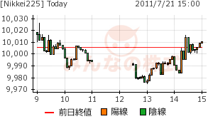 2011/07/21 - minnsann123さんの株式ブログ。タイトル:「7/21のメモ 憶測より高値に・・・」 本文:本日のNKは、NYでの高値売買の流れに沿った強気な展開だった。円高はすでに織り込み済みらしい。 NK 画像1