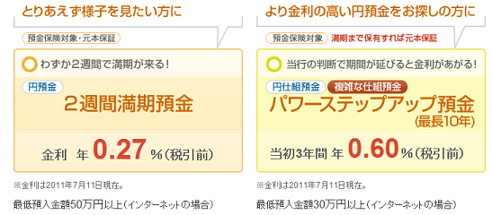 左側の超短期定期預金で年0.27%の高金利ですが、何と満期は2週間!