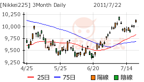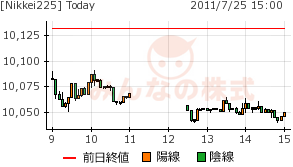 2011/07/25 - minnsann123さんの株式ブログ。タイトル:「7/25のメモ 高値圏から下げたNKだが」 本文:本日のNKは先週末の憶測通り、NY市場の下げをそのまま受けたかのような小幅安で寄りついて、その後は、先週の流れと同じように、下げて終えている。 NK 画像1