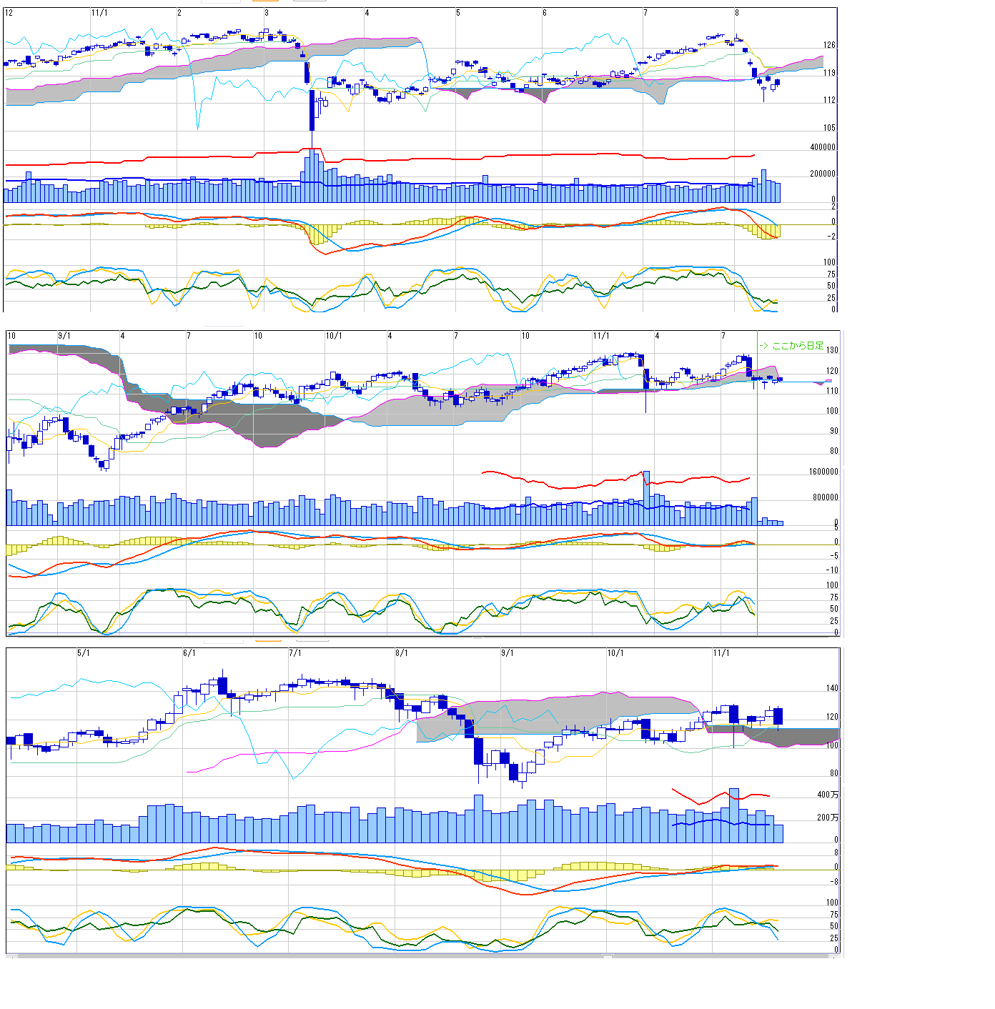 2011/08/14 - 月とスッポンさんの株式ブログ。タイトル:「8/15~ 来週のチャートポイント2」 本文:ドル建て日経 N値=122.24ドル