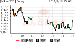 2011/08/17 - minnsann123さんの株式ブログ。タイトル:「8/16 戻りは遅いが、引け際上げ」 本文:憶測どおり、後場には上げた。が、展開は単純ではない。これは、上げ止まる可能性の問題かも。 NK 画像1