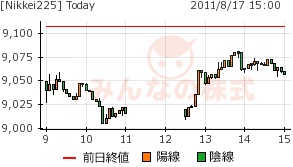 2011/08/17 - minnsann123さんの株式ブログ。タイトル:「8/17 後場は上げてほぼ十字線」 本文:またも、詰めの段階で投稿ミス。picsが不調でやる気が出ないのかも、で、かんたんに。NK 画像1