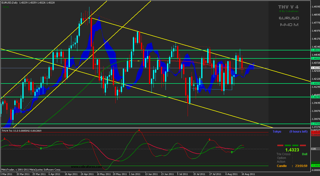 2011/08/19 - うおうおさんの株式ブログ。タイトル:「8/19朝 ユーロドル」 本文:下がってきてますね。やはりまだ下げトレンドのようです。 また追加ショートしておきました多分このあと上がるでしょうw