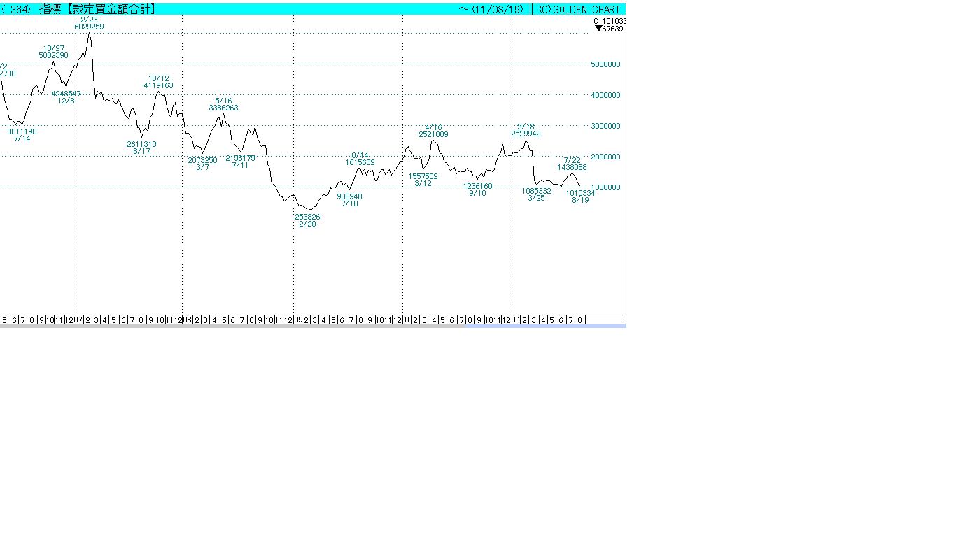 裁定買い残が4週連続減だそうです。