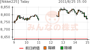 明日は、注目の一日。かねてからメモしているとおり、憶測はできない。国債格付け問題だけで大きく下げる神経質な相場なので、バーナンキ講演の内容次第ということから、来週の相場に向けて、模様眺めとなることだけははっきりしている。(今日のNKと今夜のNYの結果次第で上げそうなのだが・・・)