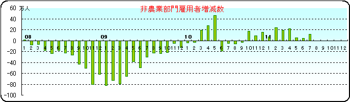 中でも最も深刻なのは雇用ー非農業部門雇用者の増減だろう。グラフをみると一目瞭然だが、力強い雇用の回復は2010年の前半だけで、あとはがっくりとモメンタムが落ち、いまやゼロに落ち込み。とても本格的な景気回復にともなう雇用者増がおきているとはいえない惨状だ。