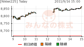 2011/09/17 - minnsann123さんの株式ブログ。タイトル:「9/16 簡単にメモ」 本文:後場も下げず、高値を伺う動きで終えた。 NK 画像1 為替 ドル76.7-8で終始後、ヨーロッパ市場で昨夜と同じようにドル高に。その後下げている。