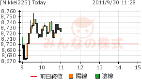 2011/09/30 - minnsann123さんの株式ブログ。タイトル:「9/30 とりあえず記録だけ」 本文:NKは、上下して方向感定まらず。 NK 画像1 為替は円高に。ドル76.6円を切った。ユーロも104円を切った。