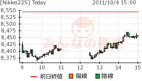 2011/10/04 - minnsann123さんの株式ブログ。タイトル:「10/4 旅先で」 本文:Cが限定的に使用できたので記録だけ NKは後場、買戻しなのか、少しあげた。とはいえ、した髭つきの陽線。明日は上げそうだが、次は下げる可能性を示している。 NK 画像1