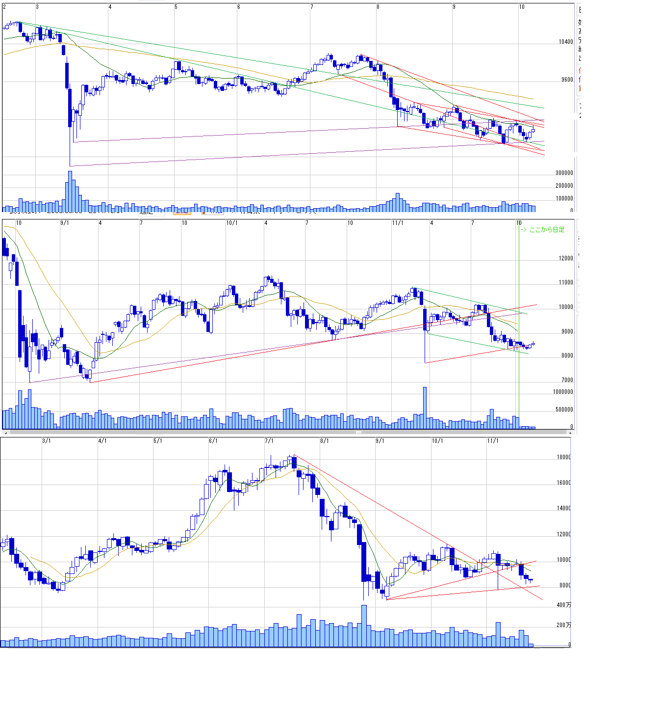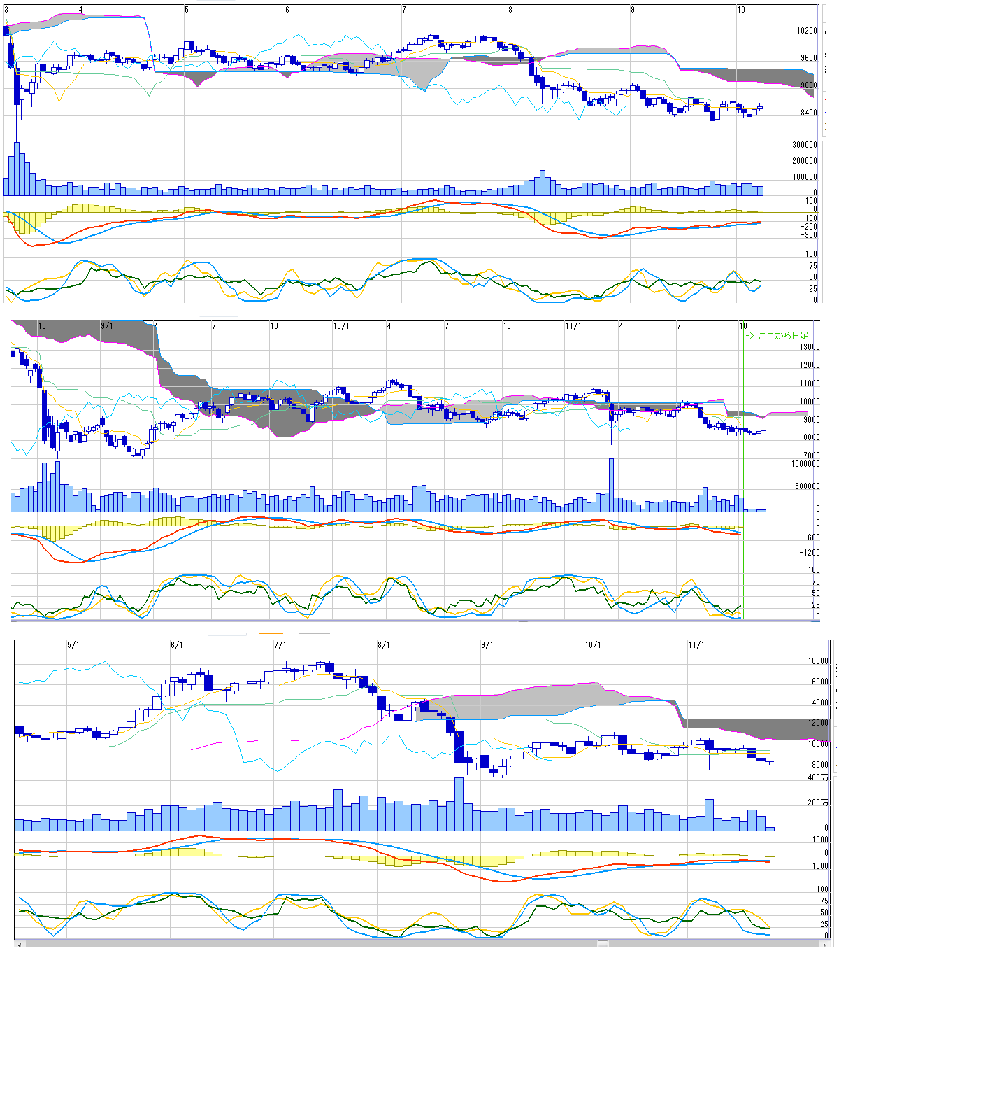 2011/10/08 - 月とスッポンさんの株式ブログ。タイトル:「10/11~ 来週のチャートポイント①」 本文:日経先物 計算値後日