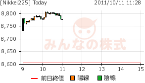 2011/10/11 - minnsann123さんの株式ブログ。タイトル:「10/11 連休明け。ダウ、為替の好調を受けて上げたが。」 本文:海外市場の連騰、ドル76.5円以上・ユーロ104円台の水準に復帰。ベルギーとかの大手銀行の破綻対応決定。など、好感を持って織り込まれているようだ。連休明けと言うこともあり、NKは上げたが、大手などの買