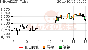 2011/10/12 - minnsann123さんの株式ブログ。タイトル:「10/12 昨日の上げすぎの調整日に・・・」 本文:下げて寄りつき、後場にやや戻して、利確売りと買い戻し・買い直しの調整日と考えられよう。材料待ちでもある。 NK 画像2