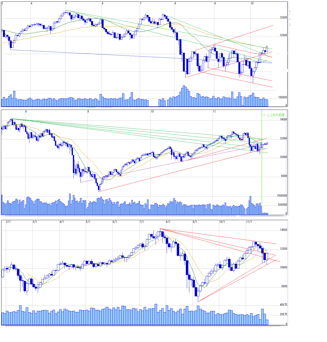 2011/10/15 - 月とスッポンさんの株式ブログ。タイトル:「10/17~ 来週のチャートポイント③」 本文:ダウ