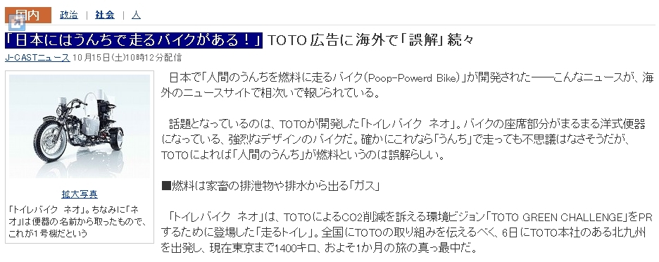 2011/10/20 - rikakusenninさんの株式ブログ。タイトル:「「日本にはうんちで走るバイクがある!」」 本文:「日本にはうんちで走るバイクがある!」