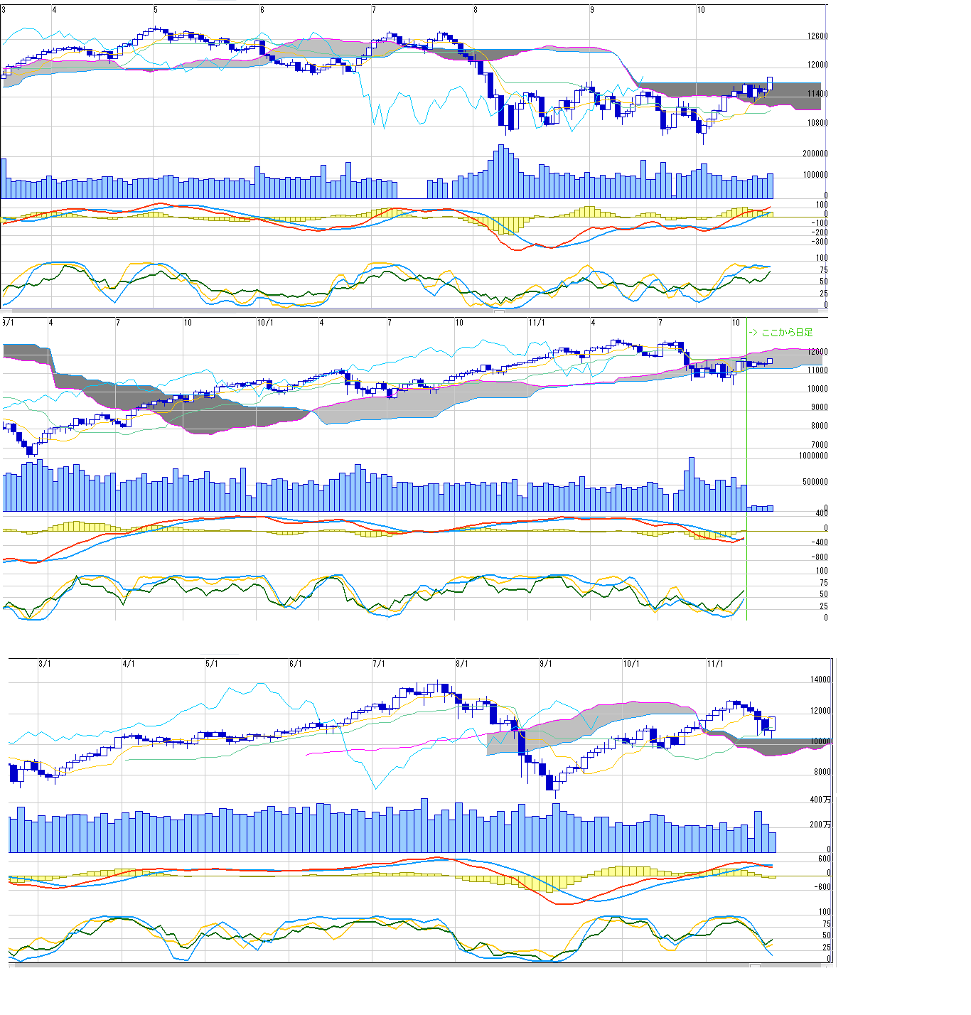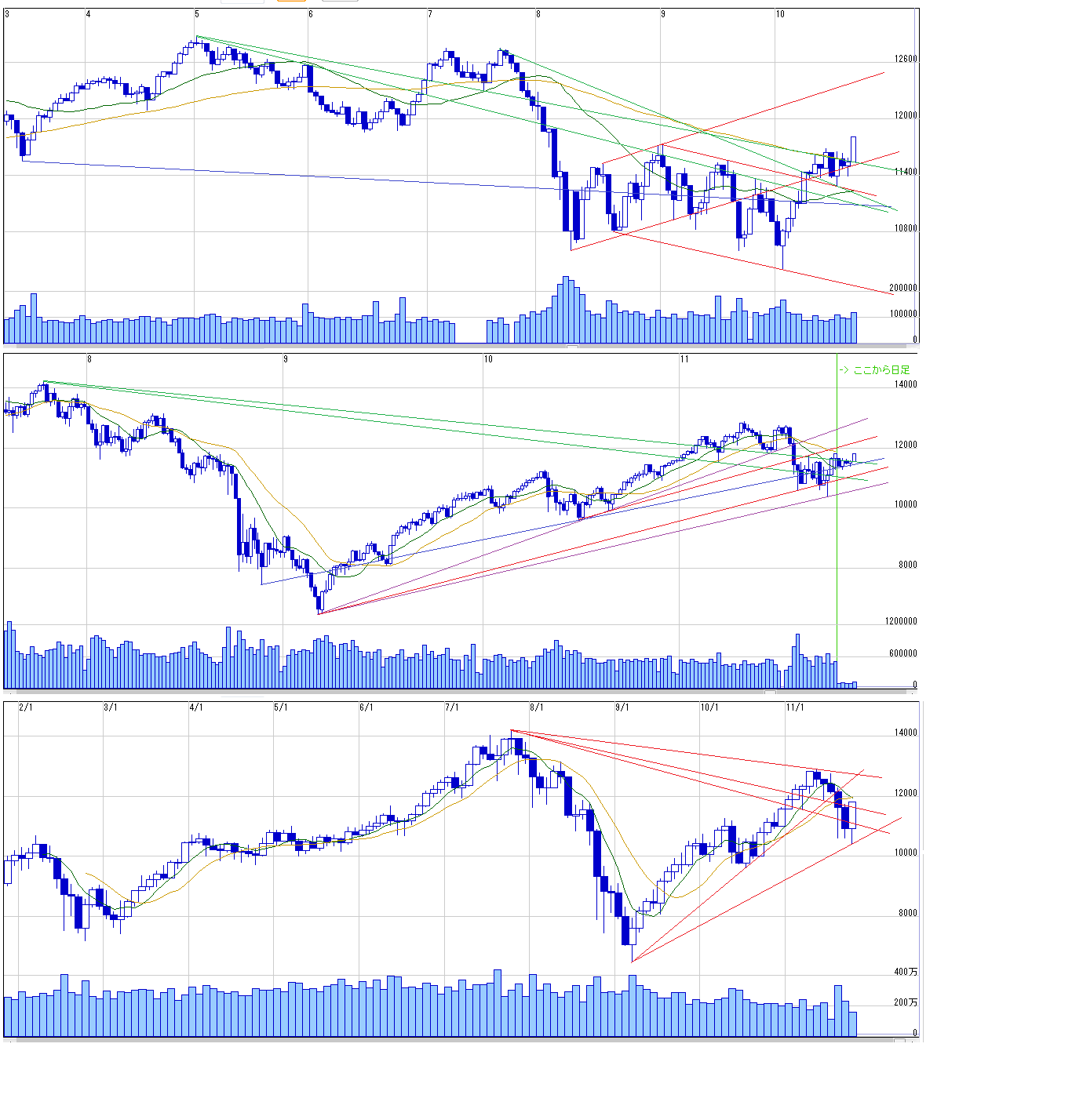 2011/10/22 - 月とスッポンさんの株式ブログ。タイトル:「10/24 来週のチャートポイント③」 本文:ダウ
