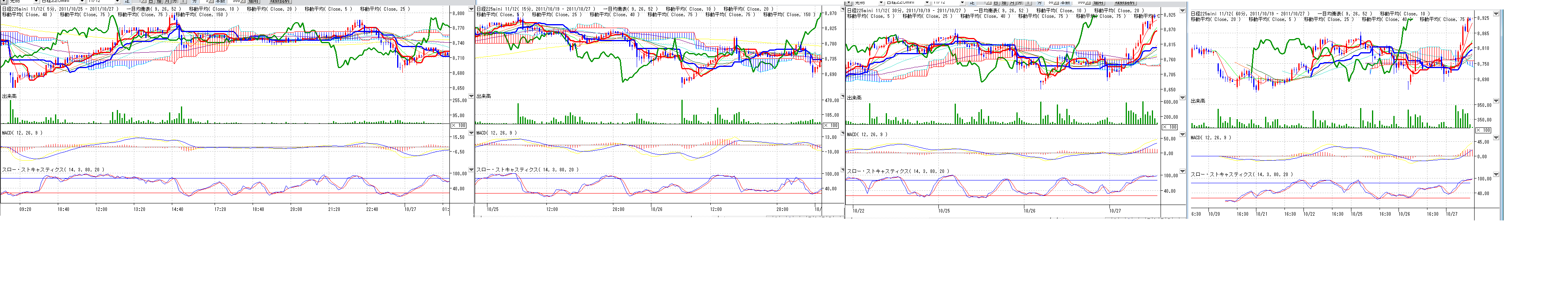 ボリバンも拡張がやんで再度収縮しそうな感じ。勢いのある上昇トレンドは短気的にはとりあえず終了した感じ。