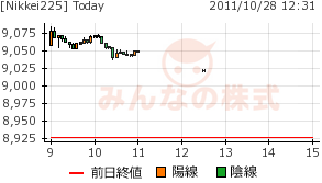 2011/10/28 - minnsann123さんの株式ブログ。タイトル:「10/28 高値で寄りつき、9050円を切り下げた」 本文:ダウの急騰を受けて、寄りつき高値となったが、その後は下げ一方のNK・・・ NK 画像1 pics銘柄で見ると、大体2%の上げ。昨日上げなかった銘柄が急騰した形か。 為替は$75.8円、ユーロ