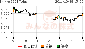 2011/10/28 - minnsann123さんの株式ブログ。タイトル:「10/28 週末でとりあえずメモ」 本文:NKは9000円で下げ止まった。憶測レンジ9000円を超えて、憶測外となったことになる。 NK 画像1 ボックスが上抜けしたかのような、9000円での反騰となった。 為替は$76円、ユーロ