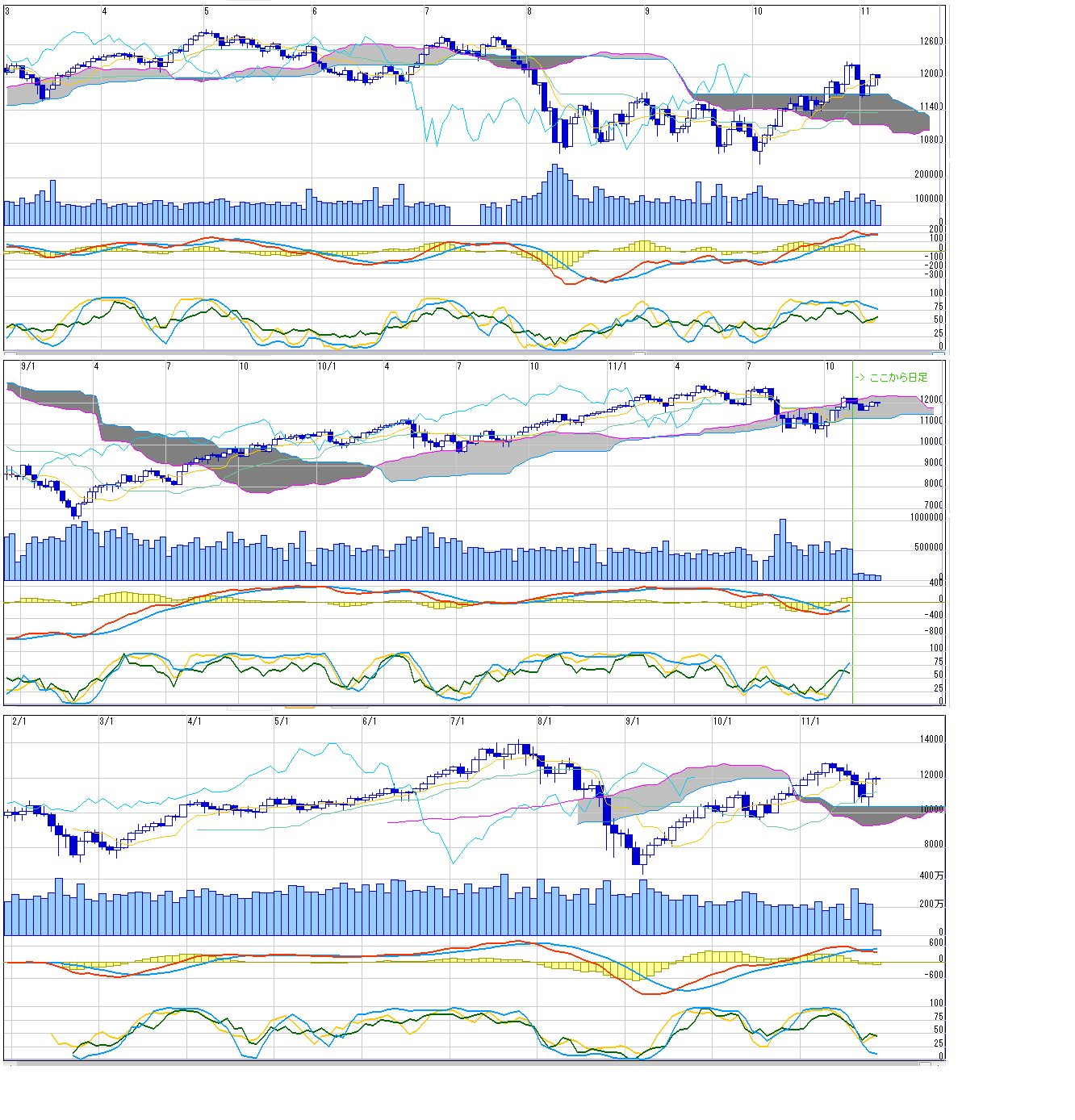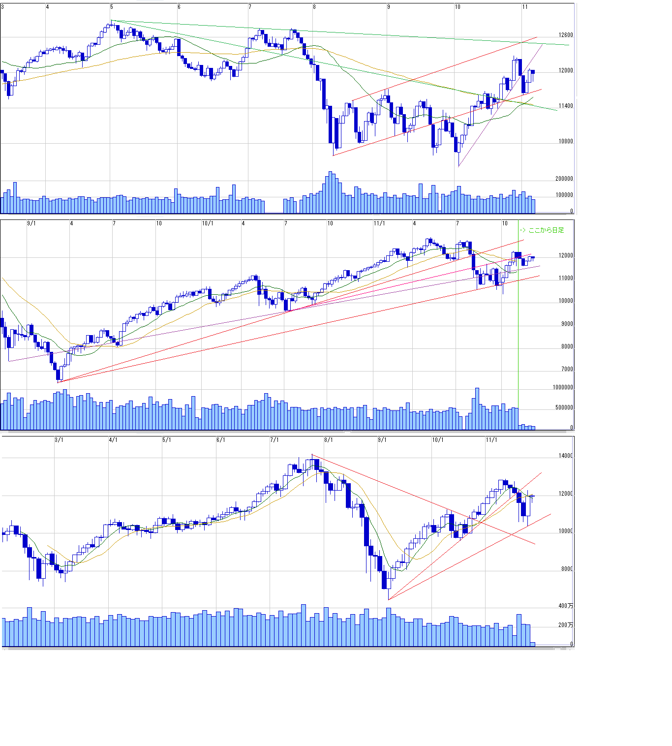 2011/11/06 - 月とスッポンさんの株式ブログ。タイトル:「11/7~ 来週のチャートポイント③」 本文:ダウ