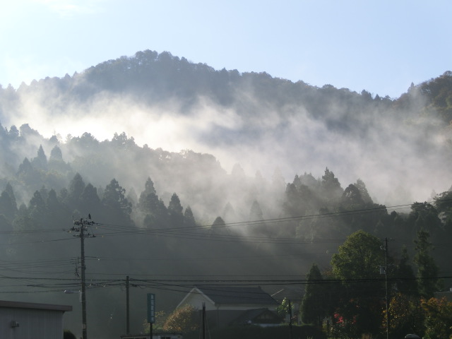 山にかかった朝霧・・きれいな景色です。