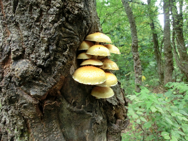 アベマキの木のうろに生えたヌメリスギタケの株です
