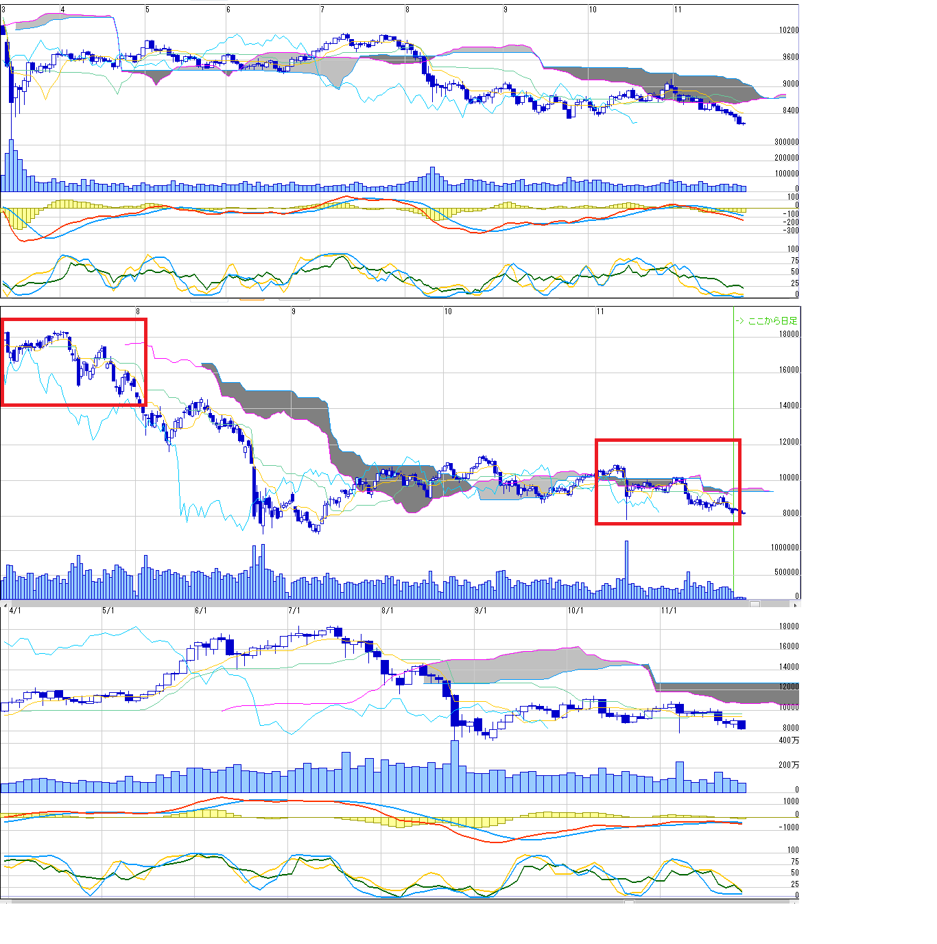 2011/11/27 - 月とスッポンさんの株式ブログ。タイトル:「11/28 来週のチャートポイント①」 本文:日経先物