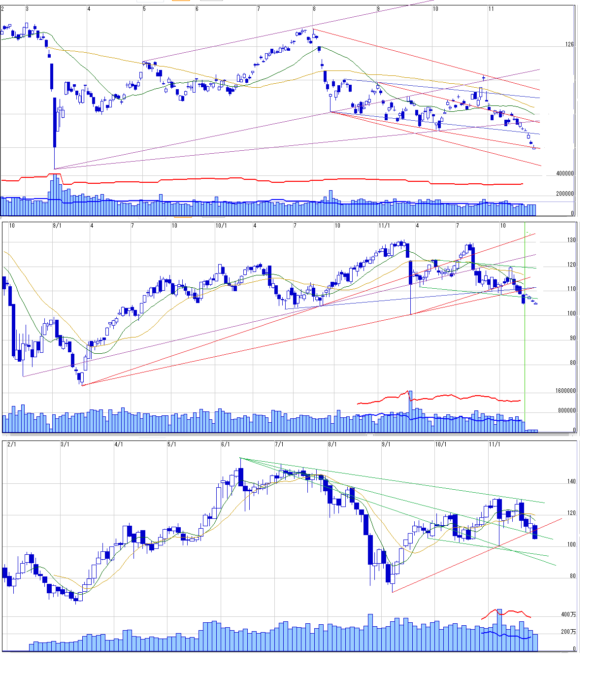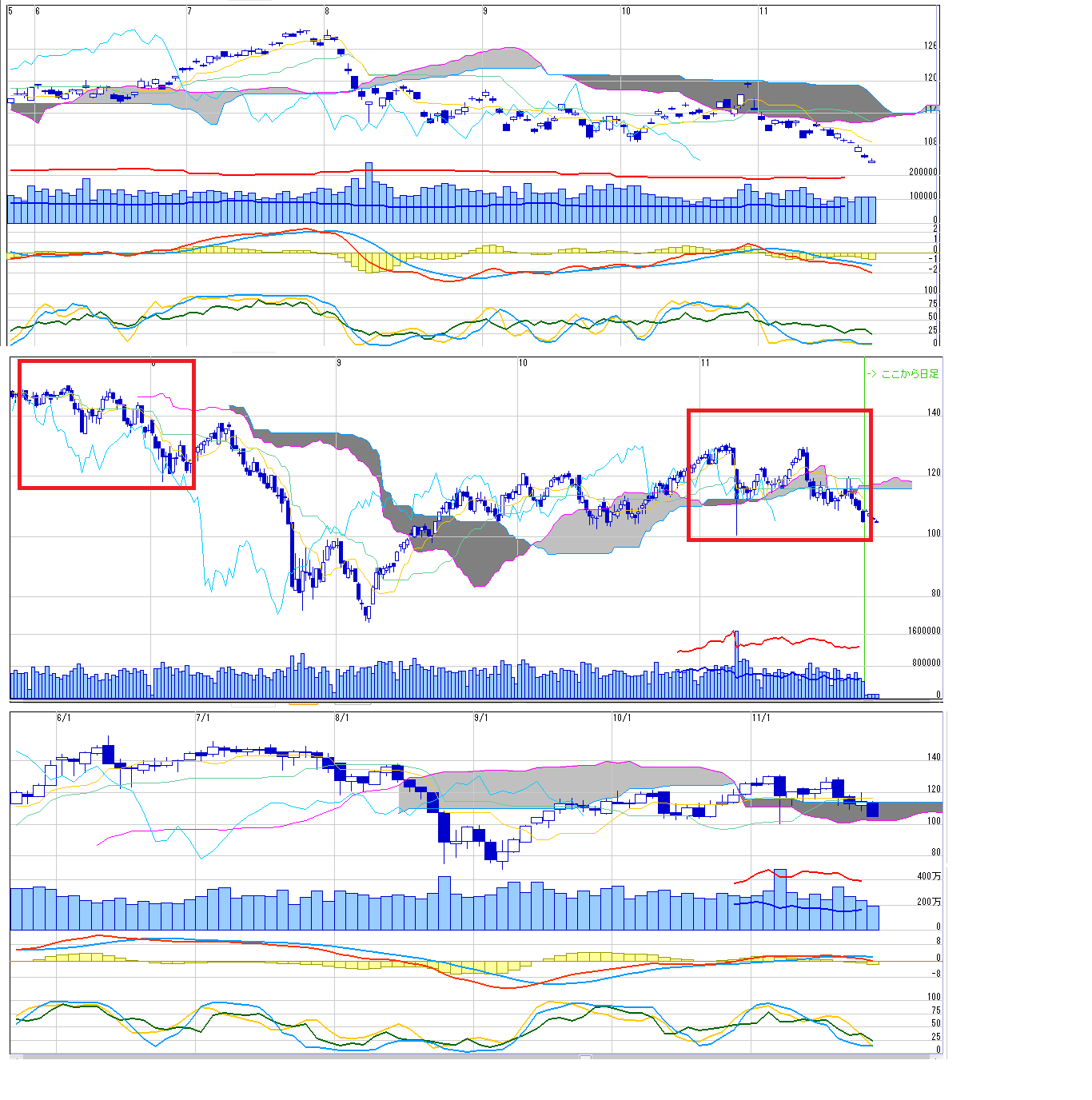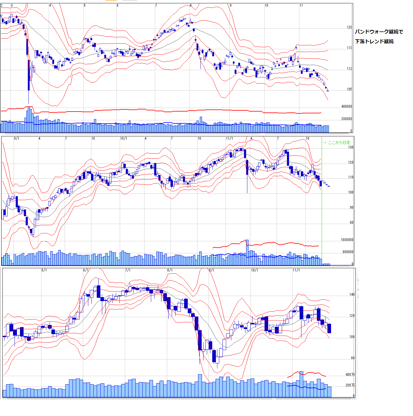 2011/11/27 - 月とスッポンさんの株式ブログ。タイトル:「11/28 来週のチャートポイント②」 本文:ドル建て日経