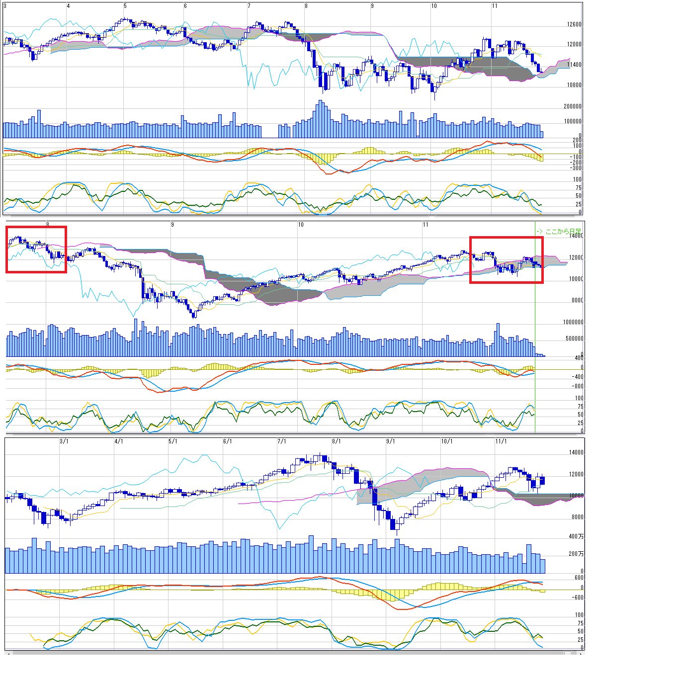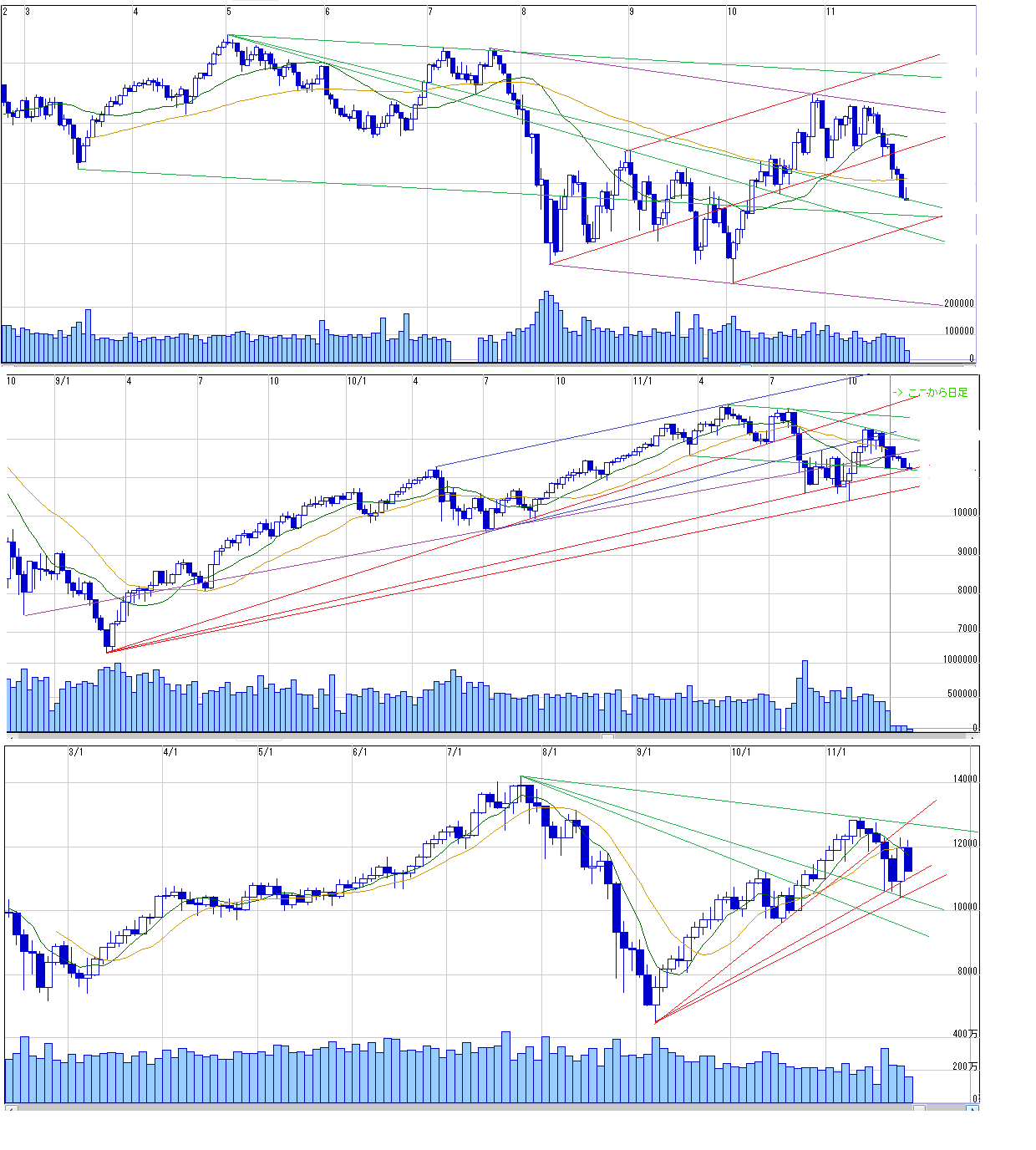 2011/11/27 - 月とスッポンさんの株式ブログ。タイトル:「11/28 来週のチャートポイント③」 本文:ダウ