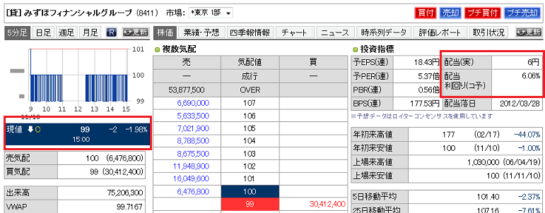 みんかぶプレミアム会員になる すでに会員の方はログイン何と日本を代表するような大手銀行株、みずほFG 8411の