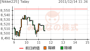 2011/12/14 - minnsann123さんの株式ブログ。タイトル:「12/14am 調整の範囲か」 本文:一時回復したものの、8500円あたりで午前を引けた。後場には、再度上げを試すのかもしれない。 NK 画像1 為替は、$78円前後 ユーロ101.6円。 pics、リアルとも下げている。