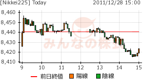 2011/12/29 - minnsann123さんの株式ブログ。タイトル:「12/28 下げたNK 記録だけ」 本文:NK 画像1  為替 $77.8円 ユーロ101.6円と、円高に動き、株価も下げた。 夜半に、ドルが急落から反騰して元の水準に。原因はユーロ安で、ユーロドルが急落、その後円に波及してドル円が反騰した。