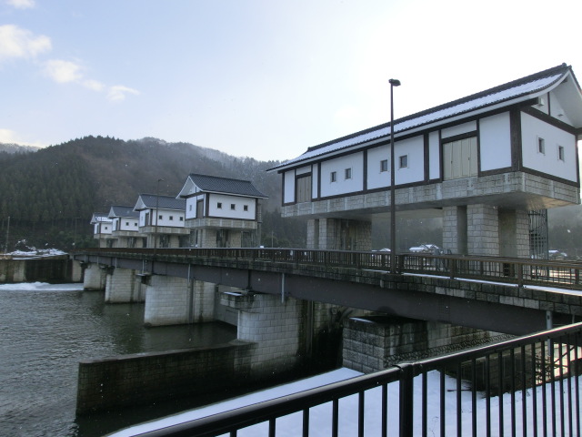 堰堤の頭の部分が武家屋敷のデザインです