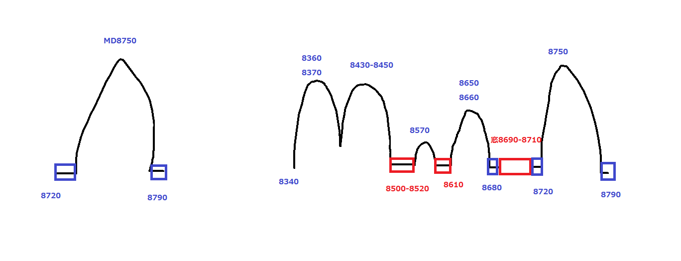 押し目の目処は 8689-8720の窓梅、8610、8500-8520のレッジ梅あたりでしょうか。
