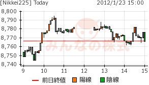 2012/01/24 - minnsann123さんの株式ブログ。タイトル:「1/23 一服か利確売りか。」 本文:安値から寄りついて上げたが、引けにかけては戻している。 NK 画像1 日足は、上髭の方が長い小陽線。上値を探った形か。