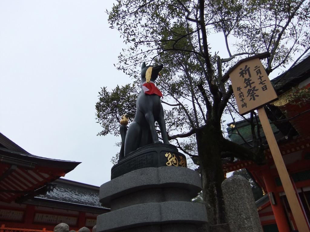 通常有名なのは、正門に対峙している鍵をくわえた左側の狛狐と、