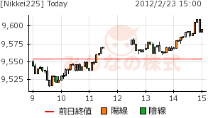 日足は下髭付きの陽線。値動きとしては、午前中に調整が終わったと見ることも出来るが、9600円までの窓を埋めることになっただけとも言えるので、明日はどうなるかは確定しない。