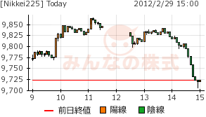 勢いよく9850円突破。が、午後は、反落で9700円に迫っている。