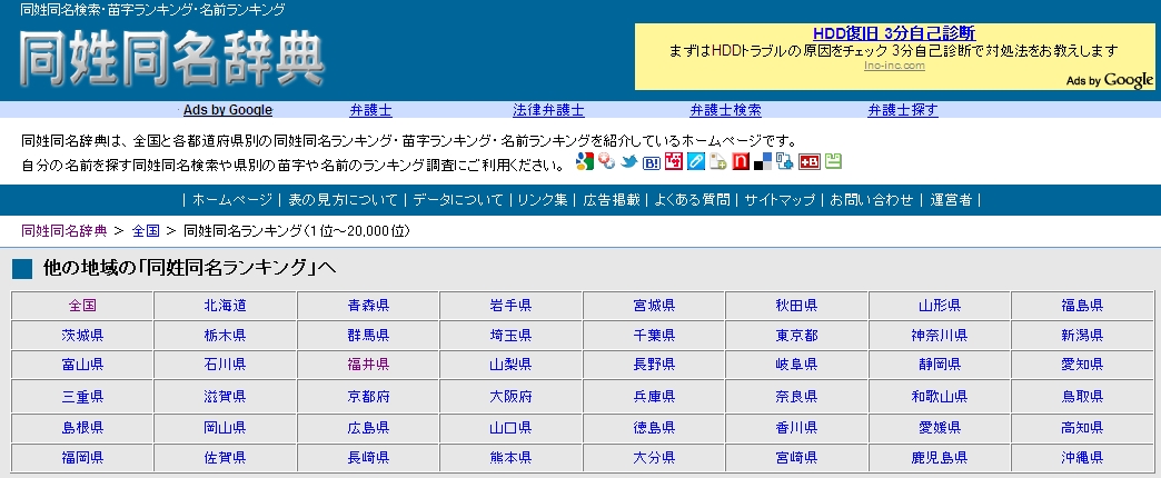 ちなみに、稀少苗字 なんてのもあって、お国の歴史を想像させます。