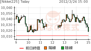 3/23の分を記録していないが、10015円を挟んで、小幅な上下に終始し、40~50円の間に隙間が出来ていた。週明けでソコを埋めた後、そのマドをもう一度なぞったというところ。