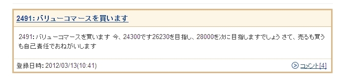 2012/03/29 - rikakusenninさんの株式ブログ。タイトル:「2491:バリューコマースを買いましたか?」 本文:2491:バリューコマースを買いましたか? 3月13日の日記で28000が目標と書きましたが、正しくは28490でした^^; 490円のオーバーについてお詫びしたいと思います